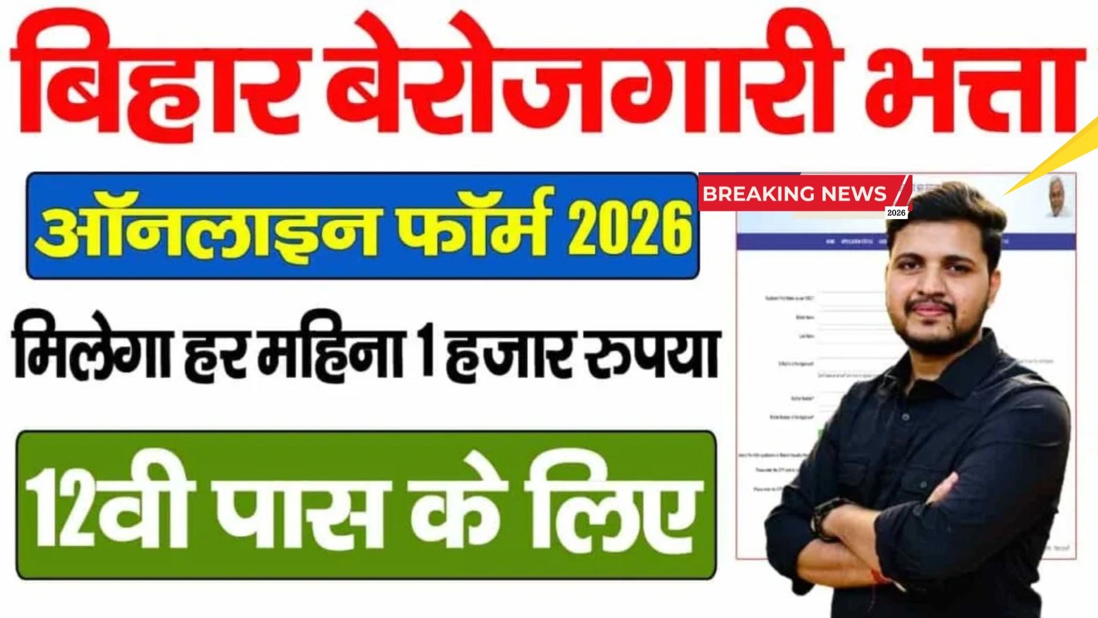 बिहार सरकार ने मुख्यमंत्री निश्चय स्वयं सहायता भत्ता योजना (MNSSBY) 2026 के तहत बेरोजगार युवाओं के लिए बड़ी राहत की घोषणा की है। इस योजना के माध्यम से कक्षा 12वीं और स्नातक पास युवा हर महीने 1,000 रुपये आर्थिक सहायता के रूप में प्राप्त कर सकते हैं। यह योजना युवाओं को आत्मनिर्भर बनाने और उनकी आर्थिक स्थिति सुधारने के उद्देश्य से शुरू की गई है।